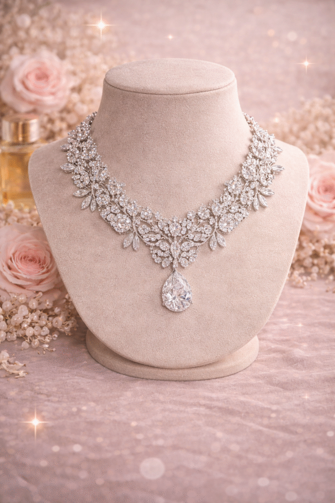 สร้อยคอ ต่างหู กำไล แหวนเพชร ดีไซน์หรูหราสำหรับเจ้าสาว